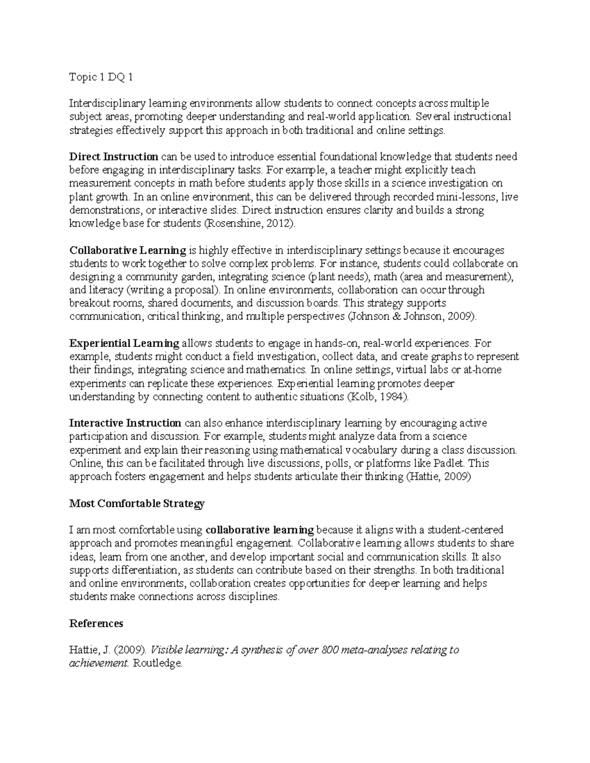 Interdisciplinary Learning Strategies: Topic 1 DQ 1 Insights - Studocu