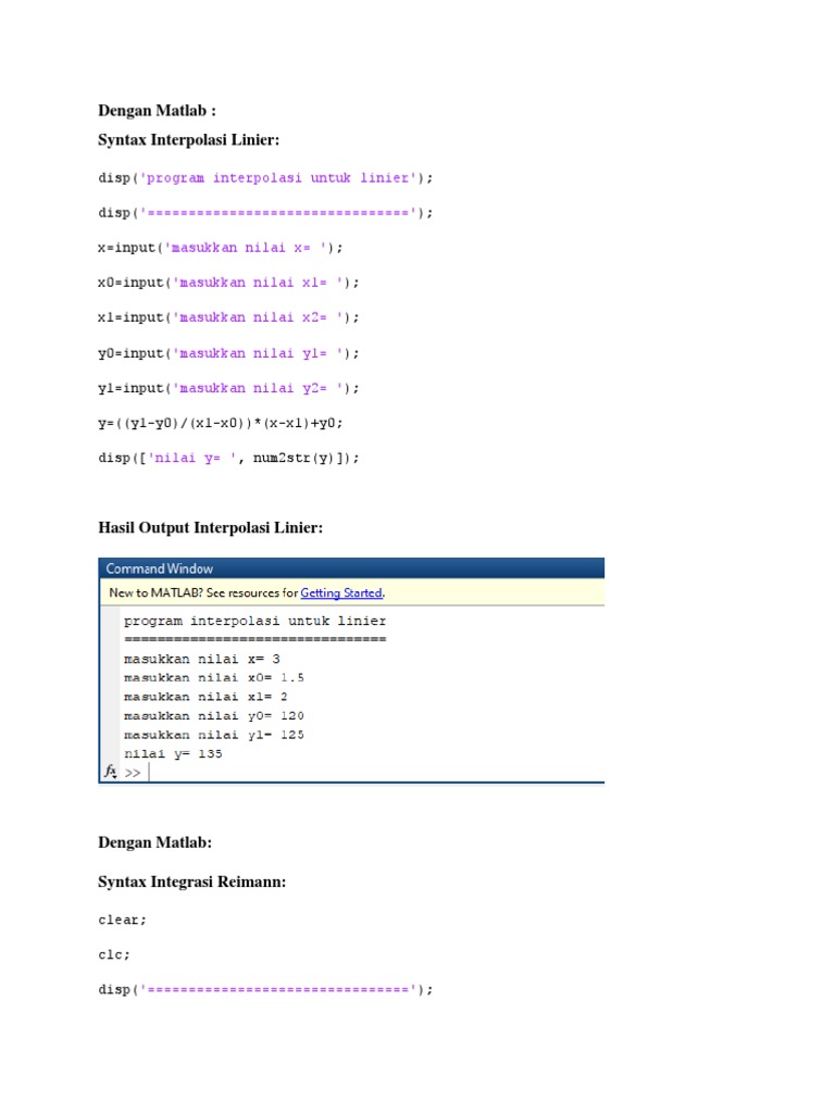 Matlab Linear Interpolation & Riemann Integration | PDF