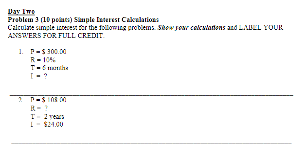 Solved Problem 3 (10 points) Simple Interest Calculations | Chegg.com