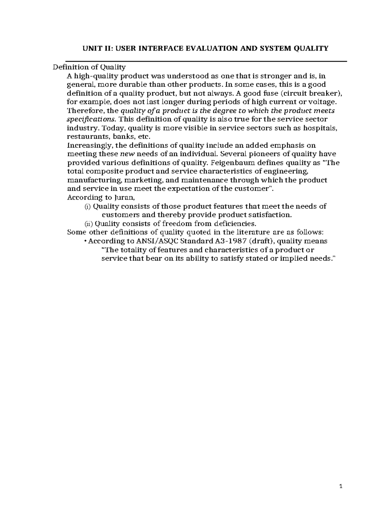 UNIT II: User Interface Evaluation & System Quality Insights - Studocu