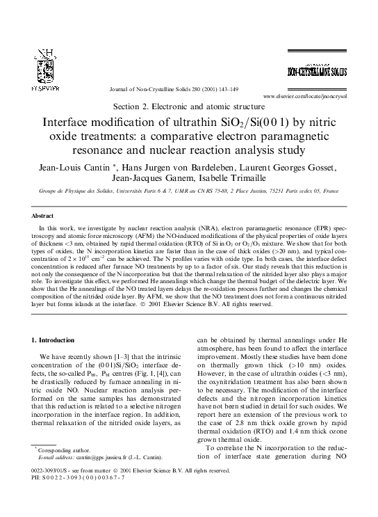 (PDF) Interface modification of ultrathin SiO2/Si(001) by nitric oxide ...