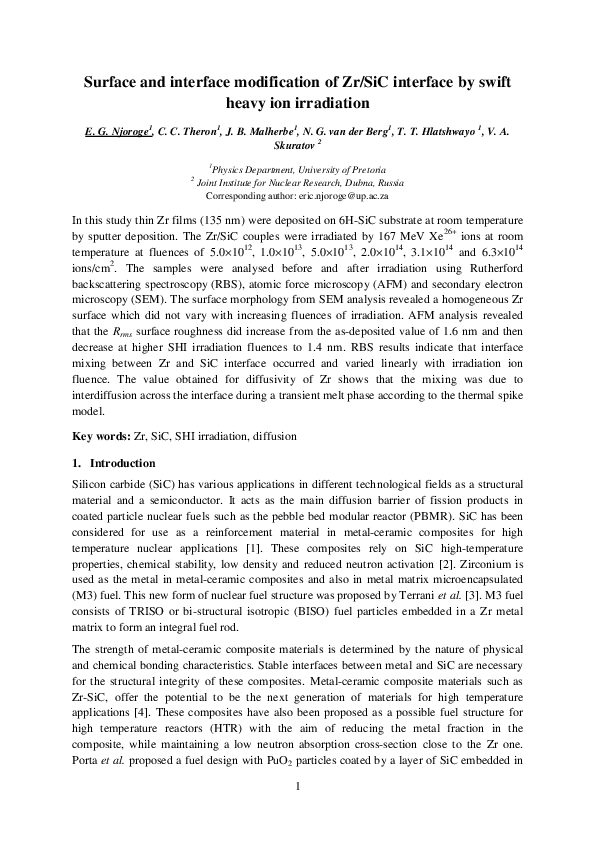 (PDF) Surface and interface modification of Zr/SiC interface by swift ...