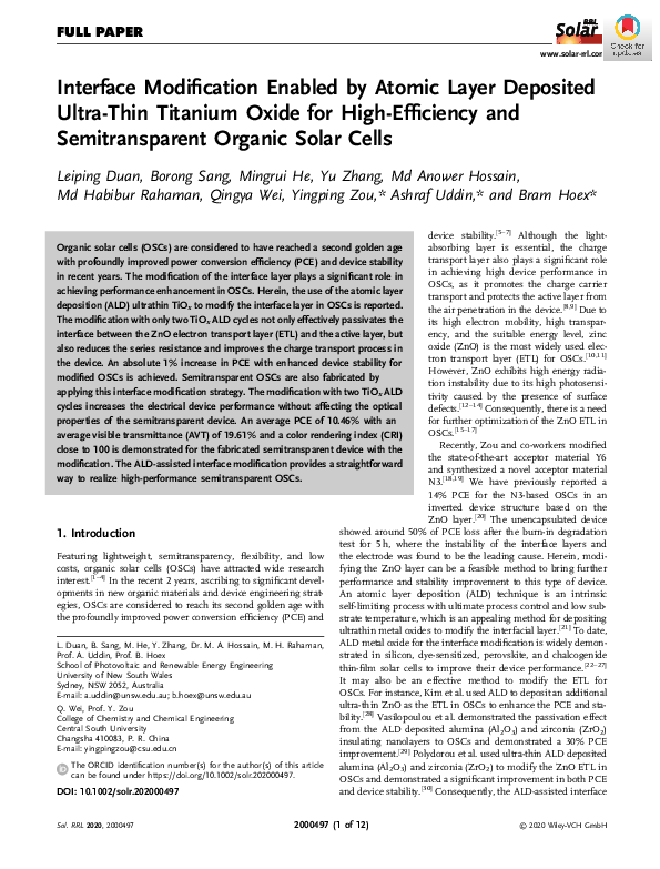 (PDF) Interface Modification Enabled by Atomic Layer Deposited Ultra ...