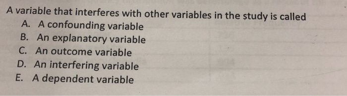 Solved A variable that interferes with other variables in | Chegg.com