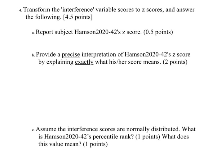 Solved 4. Transform the 'interference' variable scores to z | Chegg.com