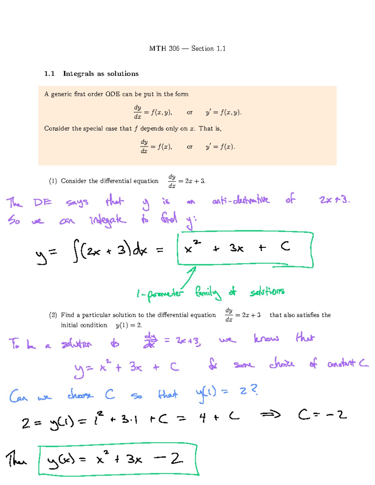 MTH 306 - Lecture on Integrals as Solutions - Studocu
