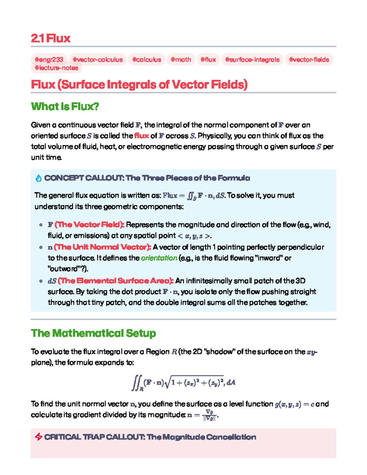 2.1 Flux - Understanding Surface Integrals of Vector Fields - Studocu