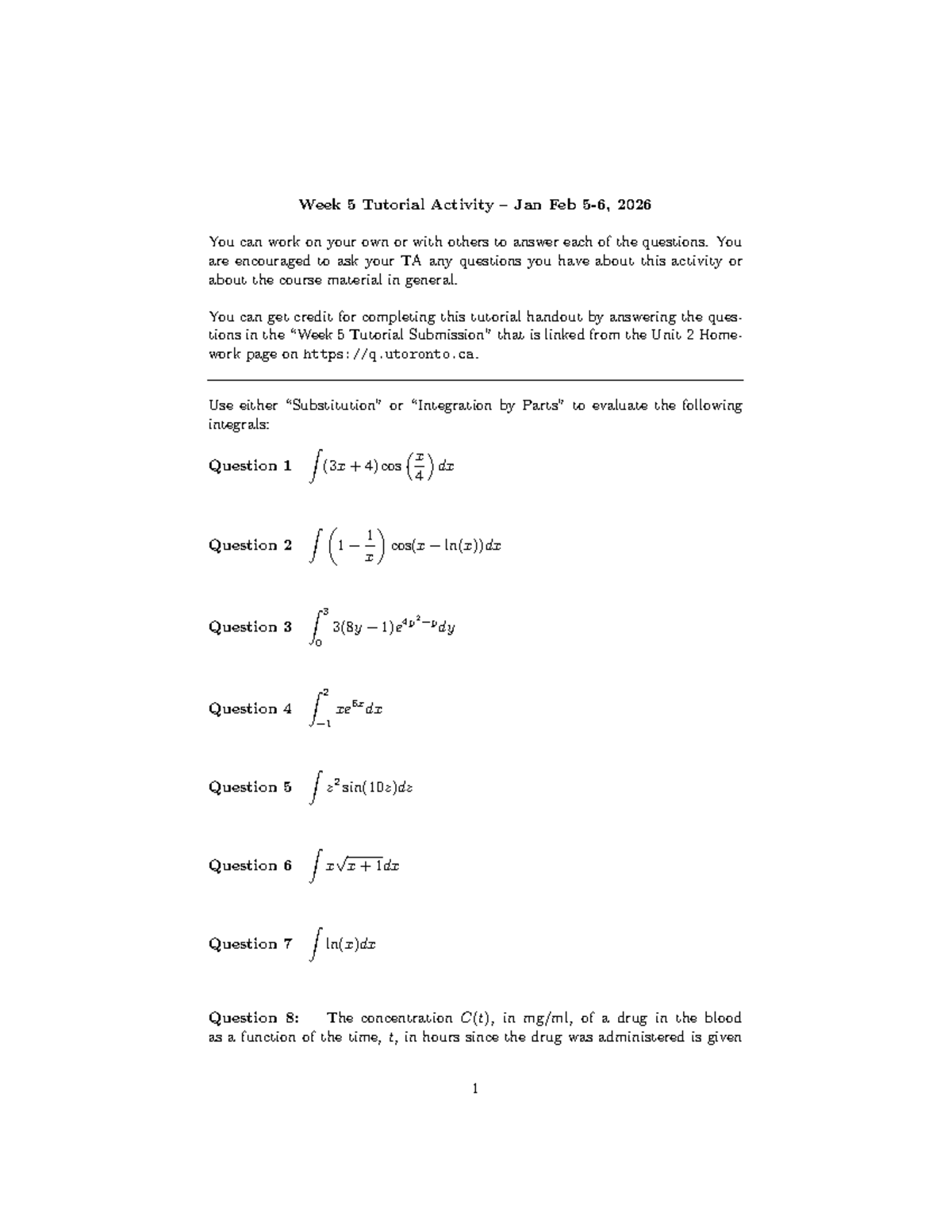 W5 Tutorial Activity: Integrals and Drug Concentration Analysis - Studocu