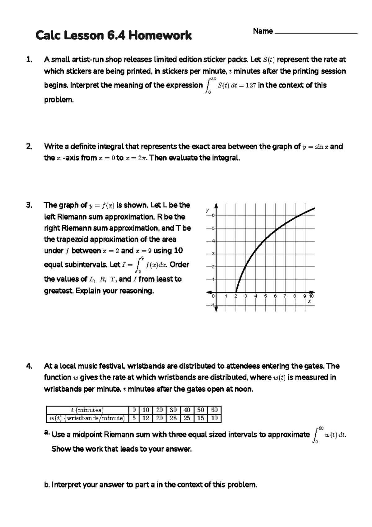 AP Calc Lesson 6.4 Homework 1: Integrals & Riemann Sums - Studocu