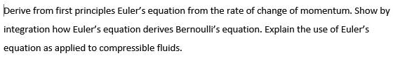 SOLVED: Derive from first principles Euler's eguation from the rate of ...