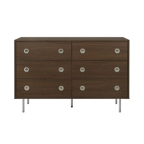 Commode Vintage Décor Bois Et Acier Inoxydable 6 Tiroirs Noyer - Shelby ...