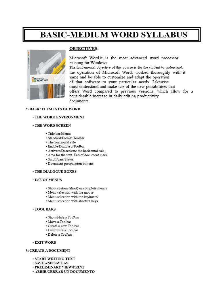 Basic Intermediate Word Curriculum | PDF | Microsoft Word | Window ...