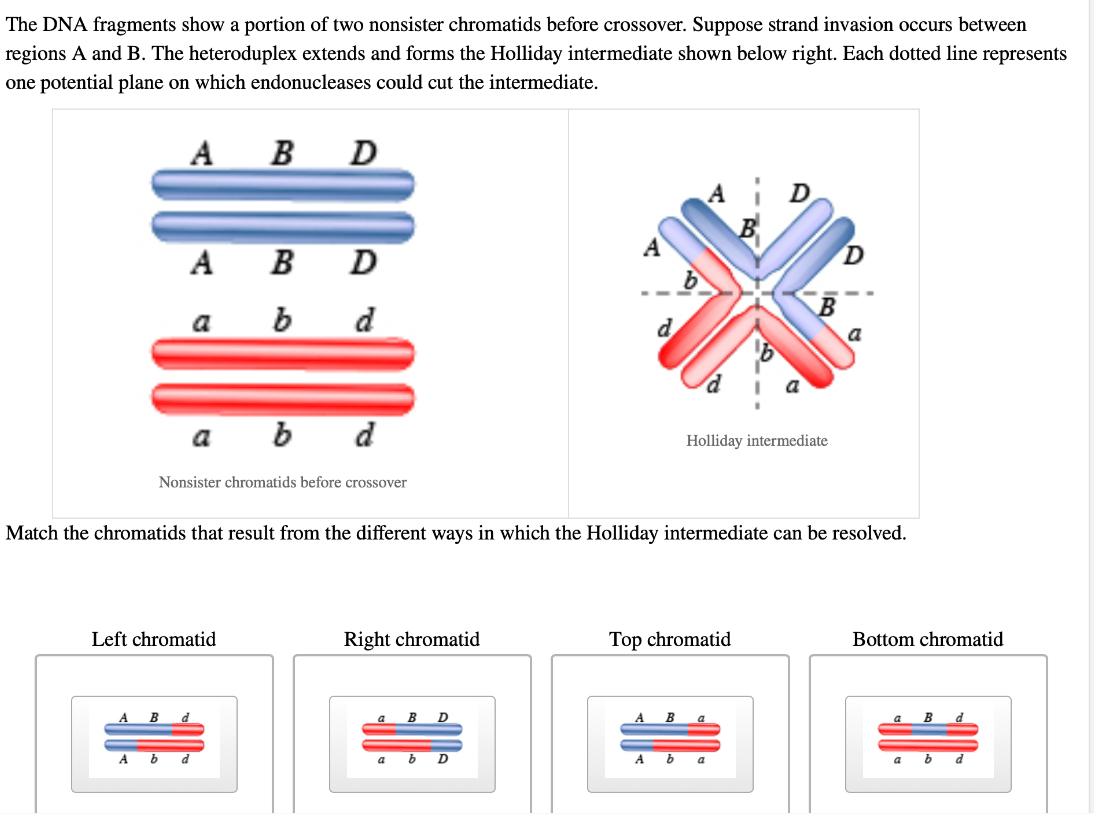 Solved The DNA fragments show a portion of two nonsister | Chegg.com