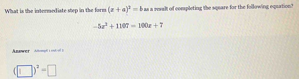 Solved: What is the intermediate step in the form (x+a)^2=b as a result ...