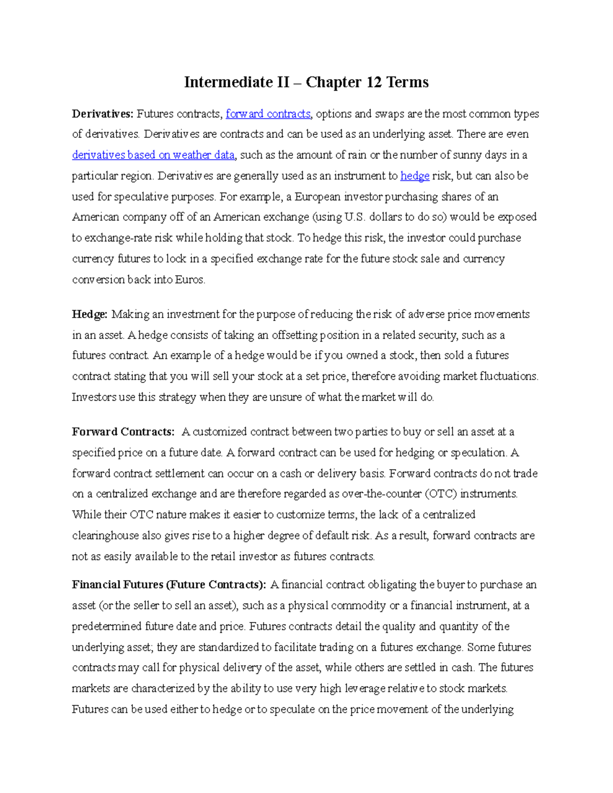 Intermediate II-Terminology - Intermediate II – Chapter 12 Terms ...