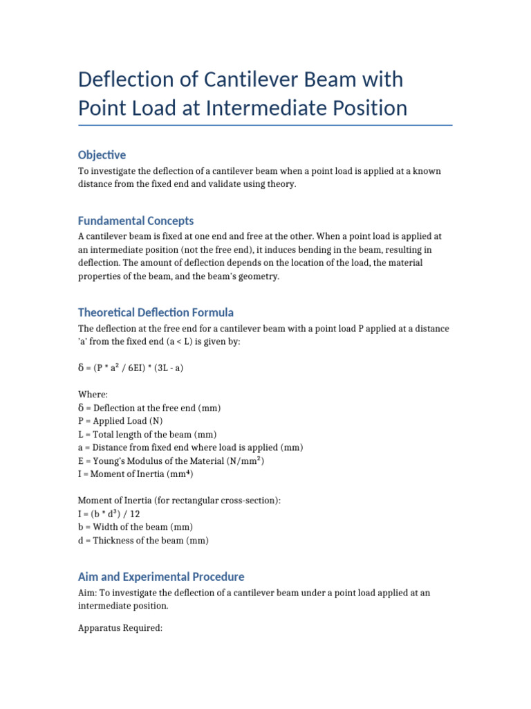 Cantilever Beam Intermediate Load Experiment | PDF