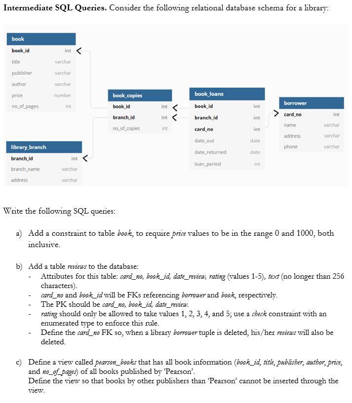 Solved Intermediate SQL Queries. Consider the following | Chegg.com
