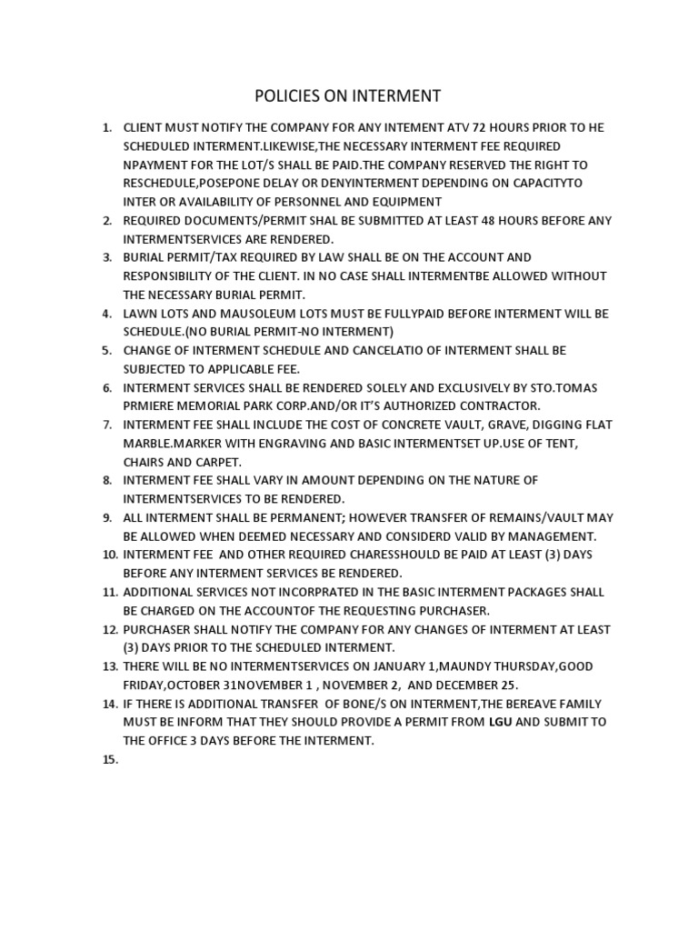 Interment Policies and Requirements Guide | PDF | Business