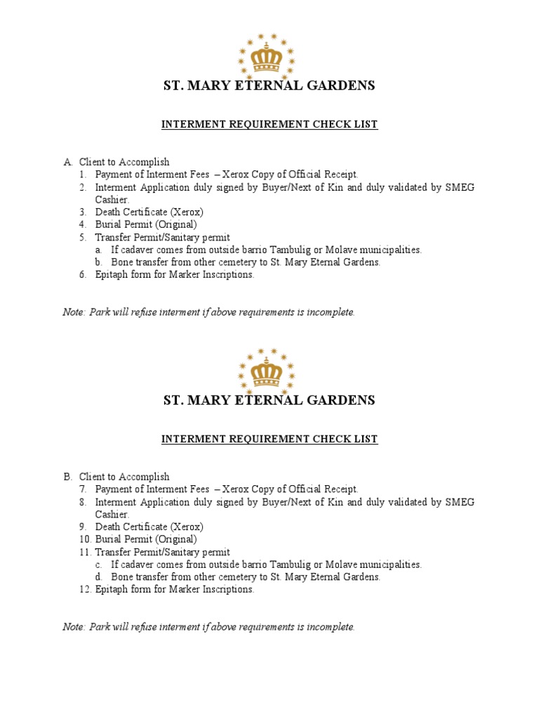 Interment Checklist | PDF