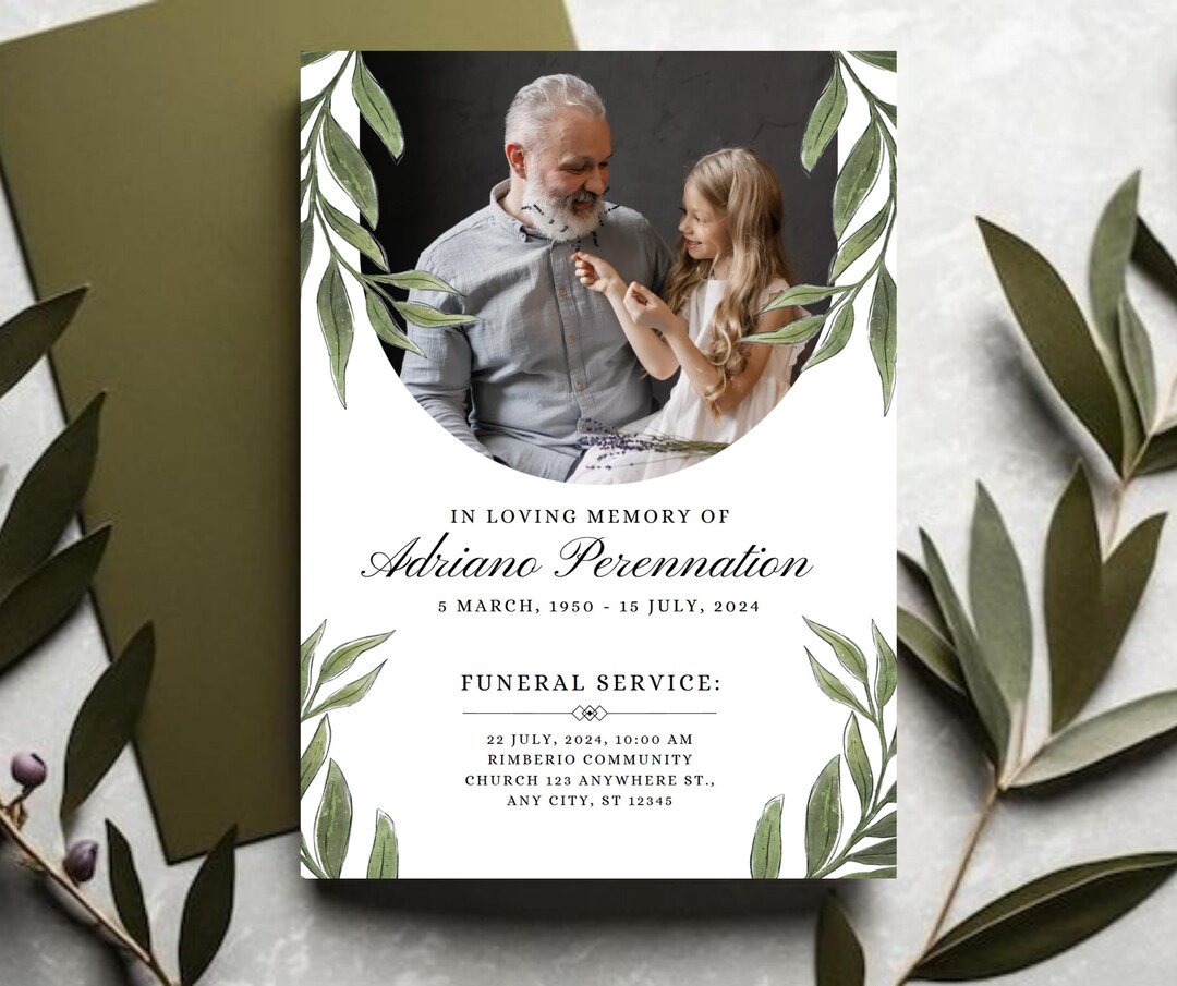 Funeral Invitation For Men or Women with Watercolor Greenery