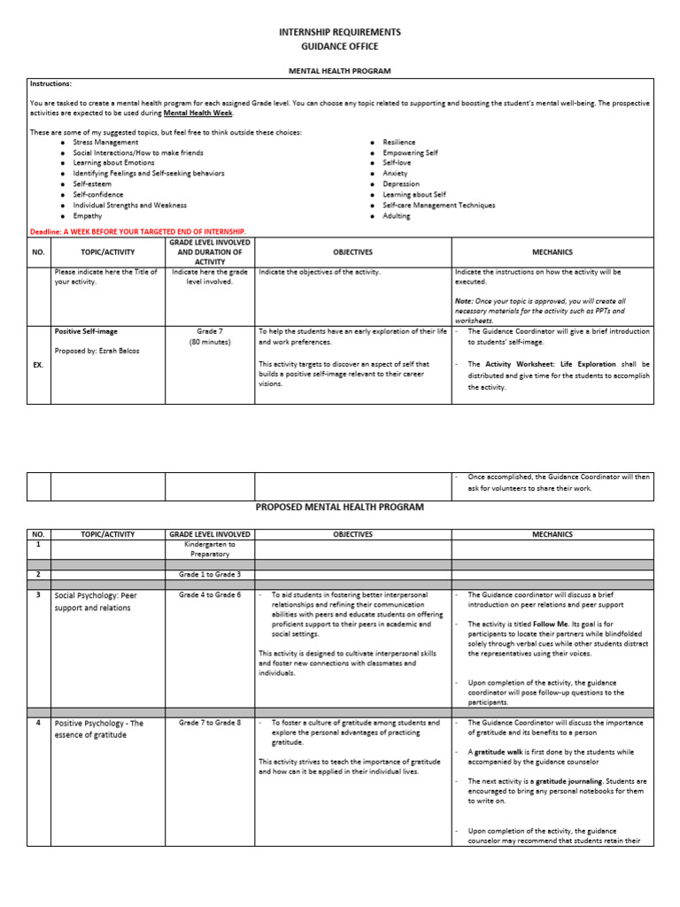 [MH PROG] - Intern Activities for Guidance Office | PDF | Self Esteem ...