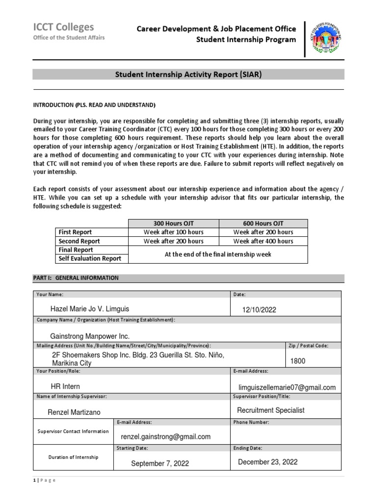 LIMGUIS Student Internship Activity Report Form | PDF | Employment ...
