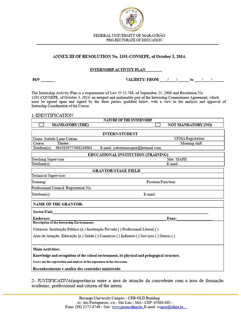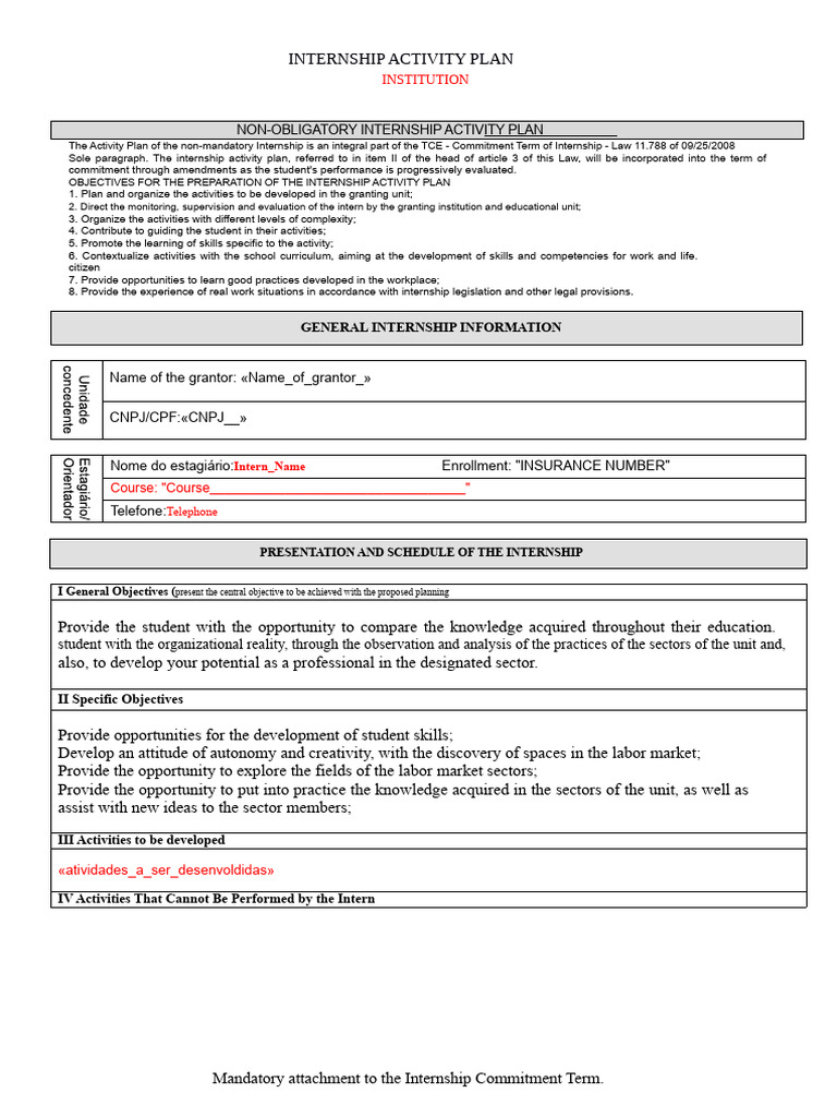 Mandatory Internship Activity Plan Model | PDF