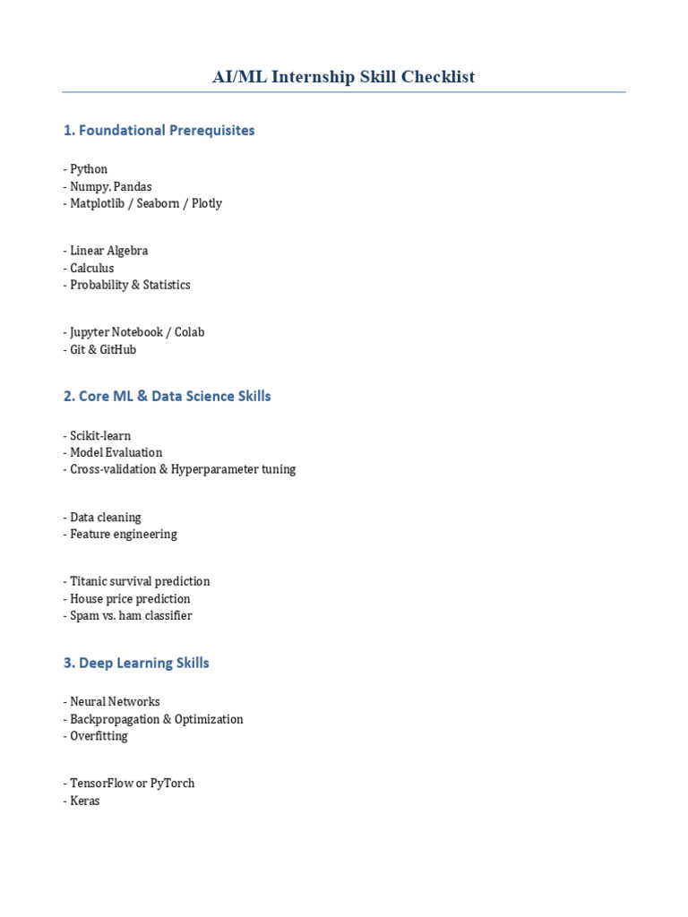 AI ML Internship Skills Checklist | PDF