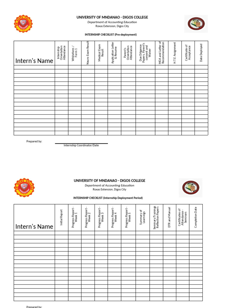 Internship Checklist Template in Google Docs, Word - Download ...