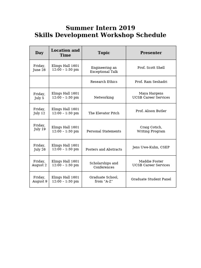CSEP - Summer Intern Workshop Schedule 2019 | PDF