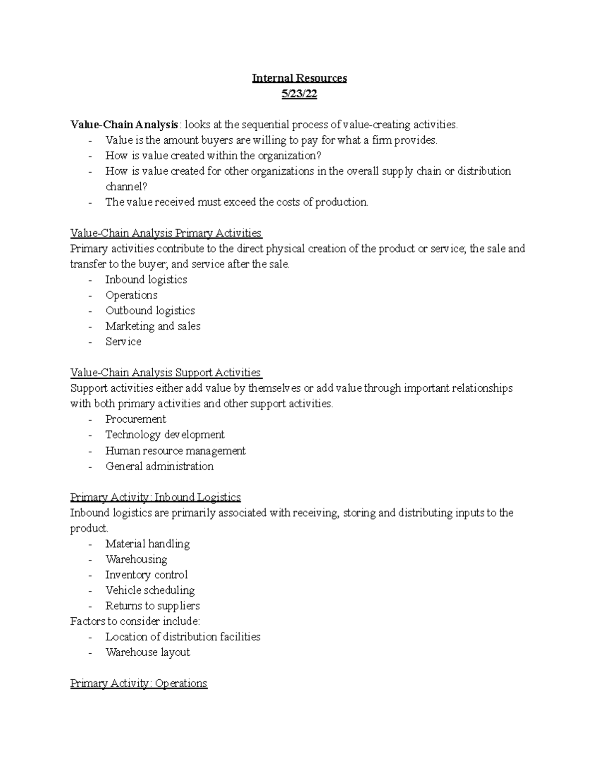 Value Chain Analysis: Strategy Notes & Internal Analysis