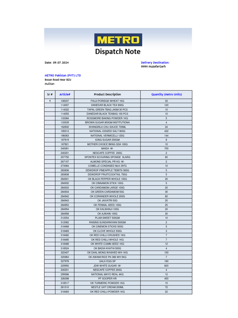 Dispatch Note Indus 09.07.24 | PDF | Foods | Cuisine
