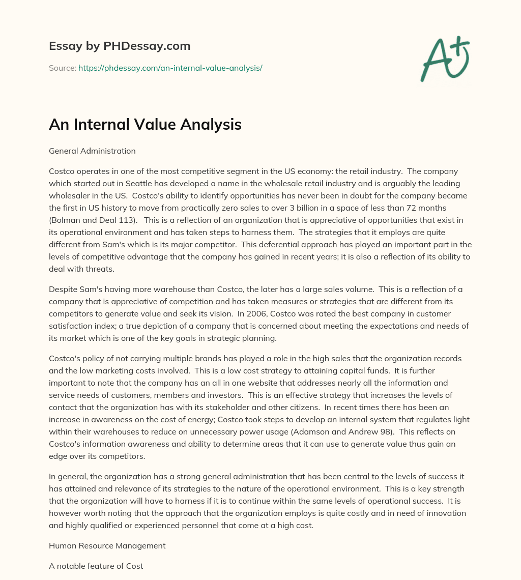 An Internal Value Analysis - PHDessay.com