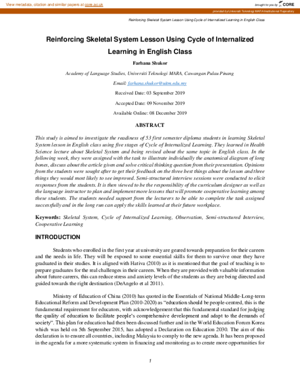 (PDF) Reinforcing Skeletal System Lesson Using Cycle of Internalized ...