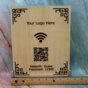 Wooden Wifi QR Code Sign + Logo, Eco-friendly Custom Internet Password ...