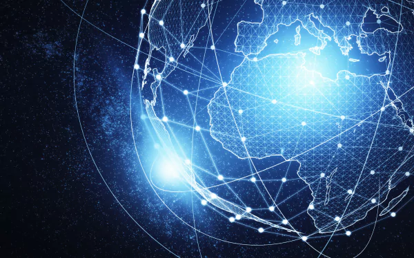 Network Wallpaper 4K, Connections, Earth, Lights, Blue