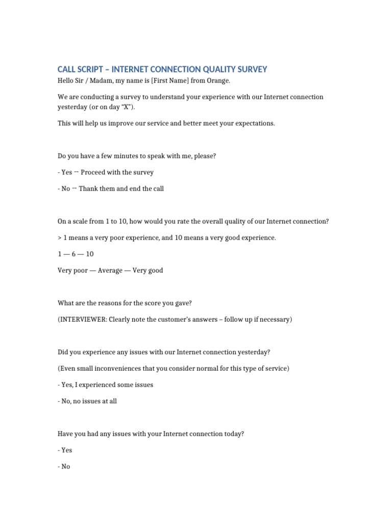 Internet Connection Quality Survey Script EN | PDF
