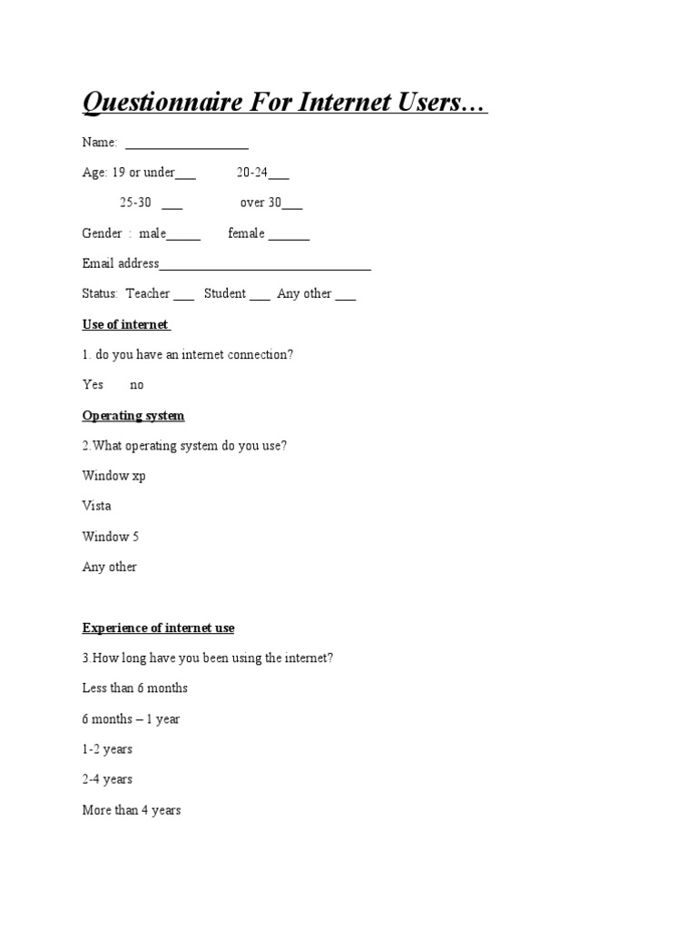 Questionnaire For Internet Users | PDF | Internet | World Wide Web