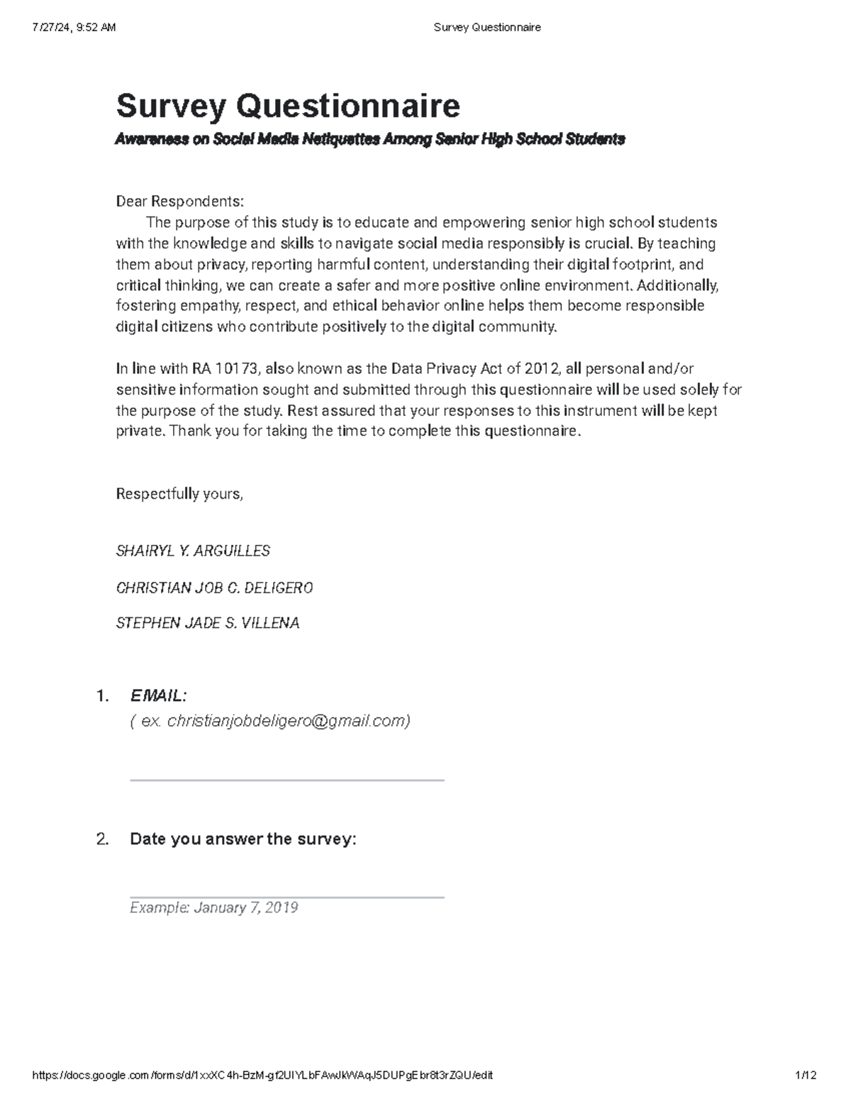 Awareness of Social Media Netiquette: SHS Students Survey Questionnaire ...