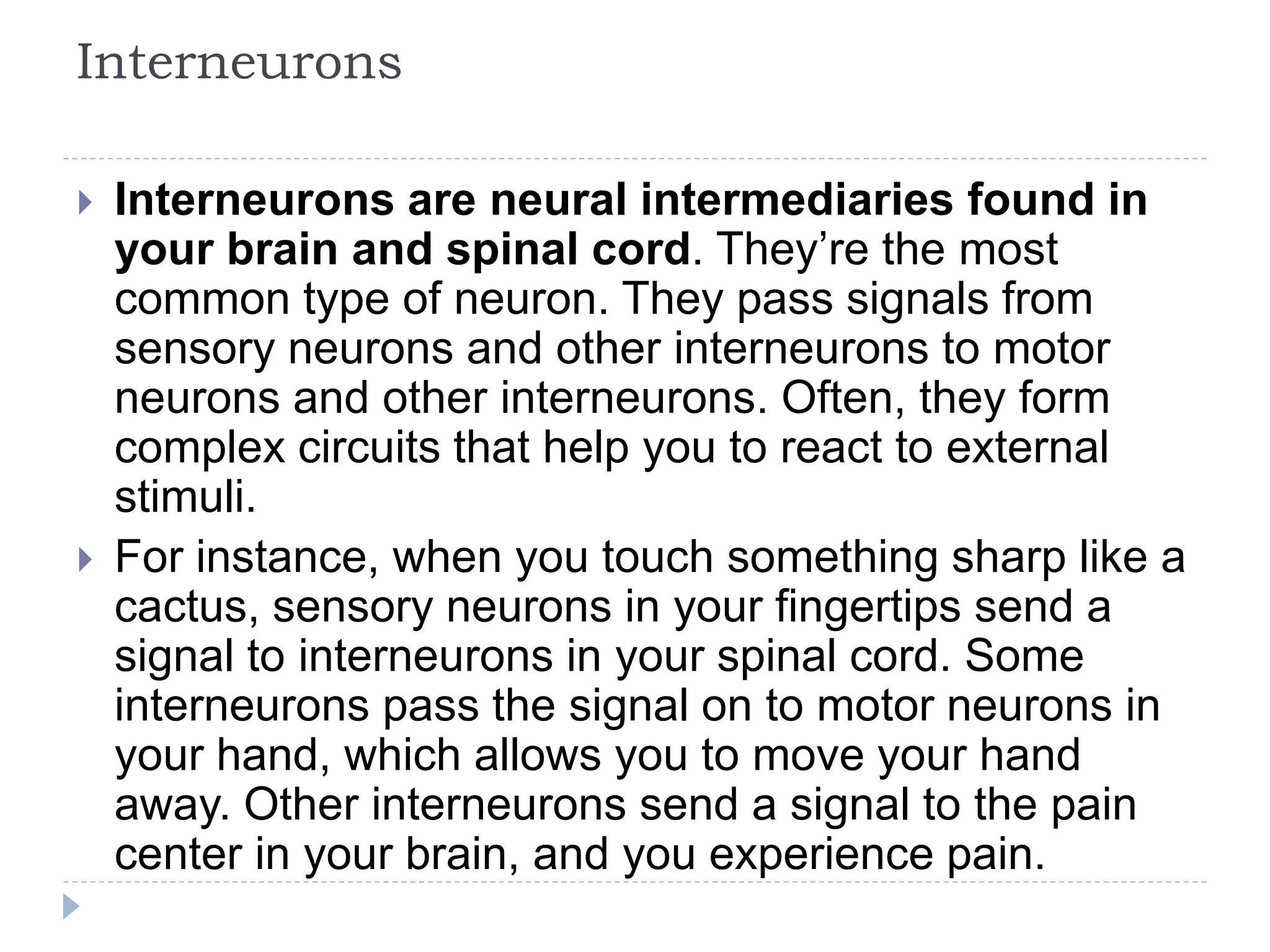 Connect Sensory Neurons Motor Neurons And Other Interneurons Ppt ...