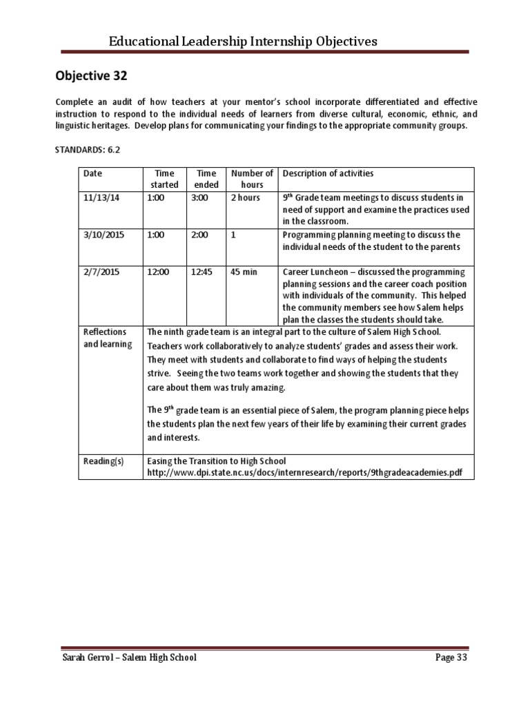 Objective 32: Educational Leadership Internship Objectives | PDF