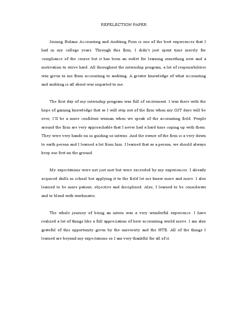 Example Of Reflection Paper : Internship Reflection Paper-page-001 ...