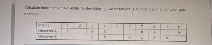 Calculate Interobserver Reliability for the following | Chegg.com