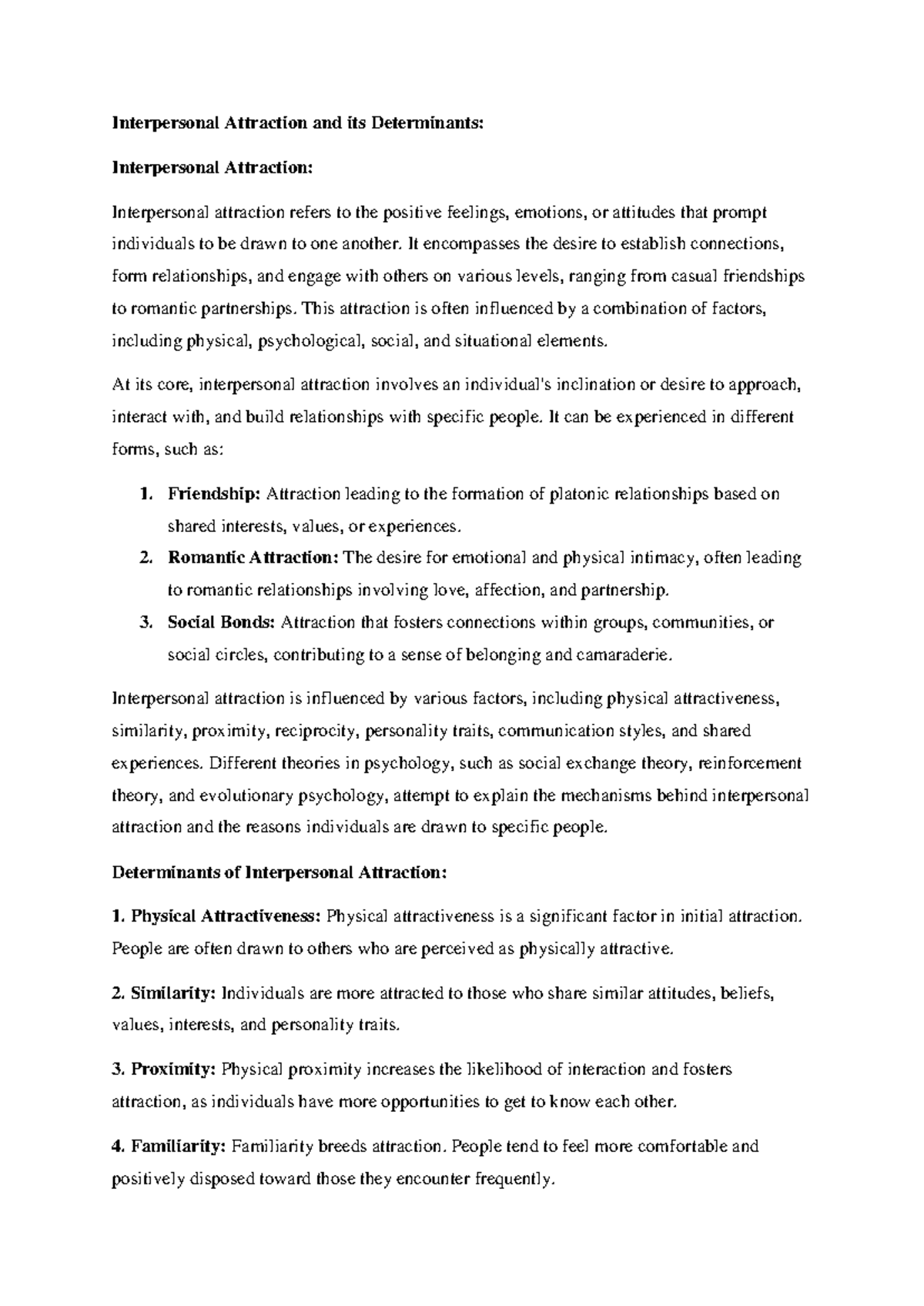 Interpersonal Attraction and its Determinants - Interpersonal ...