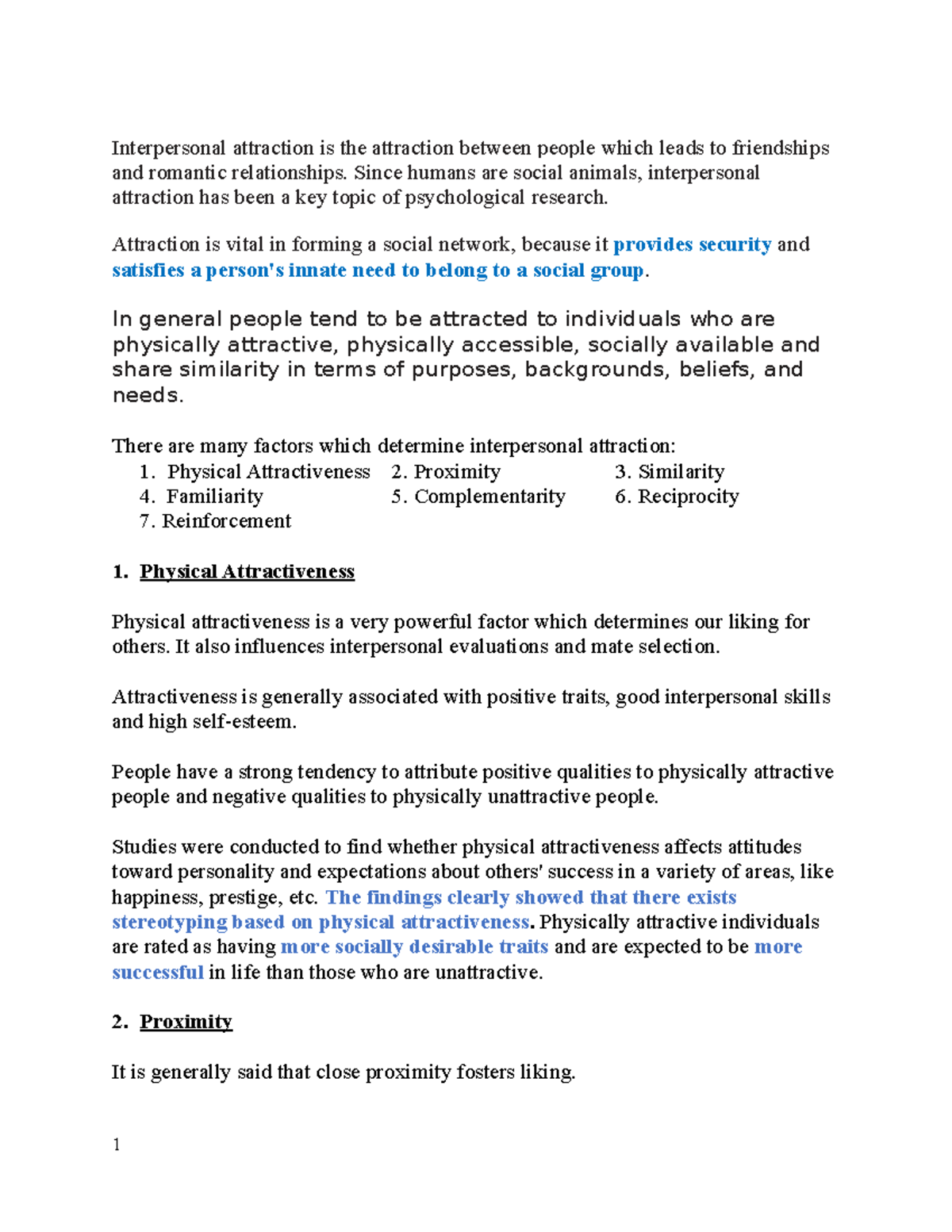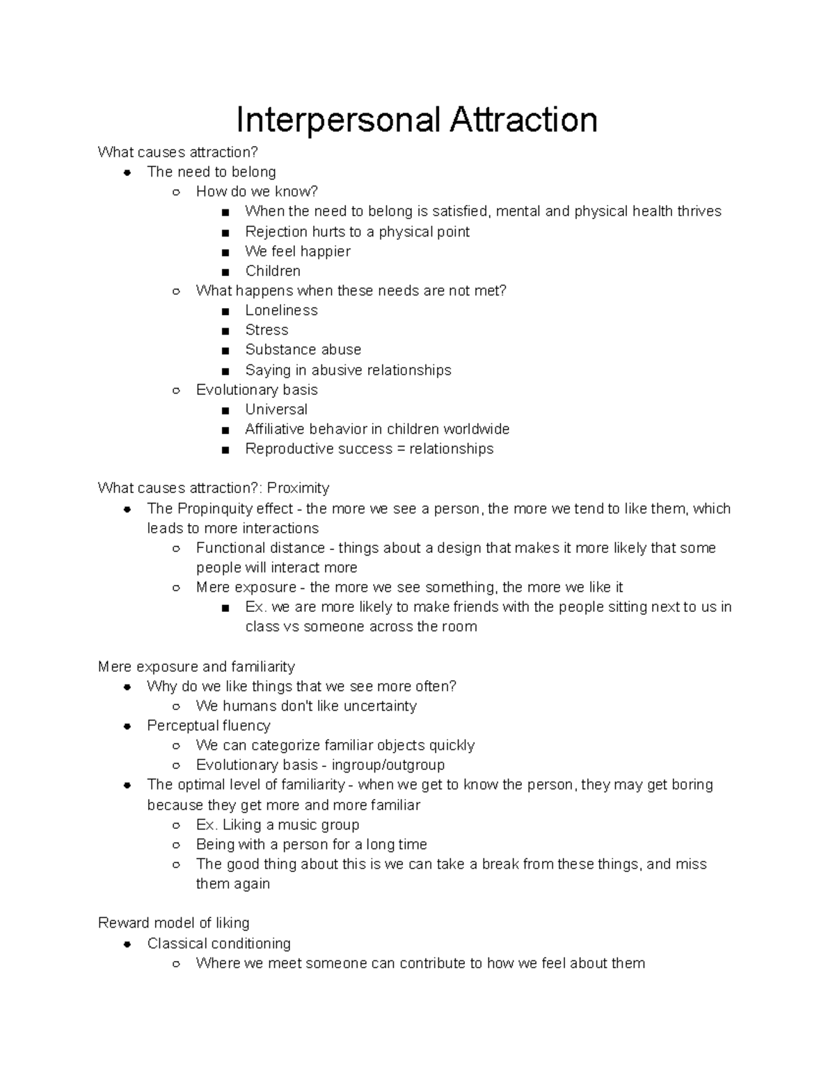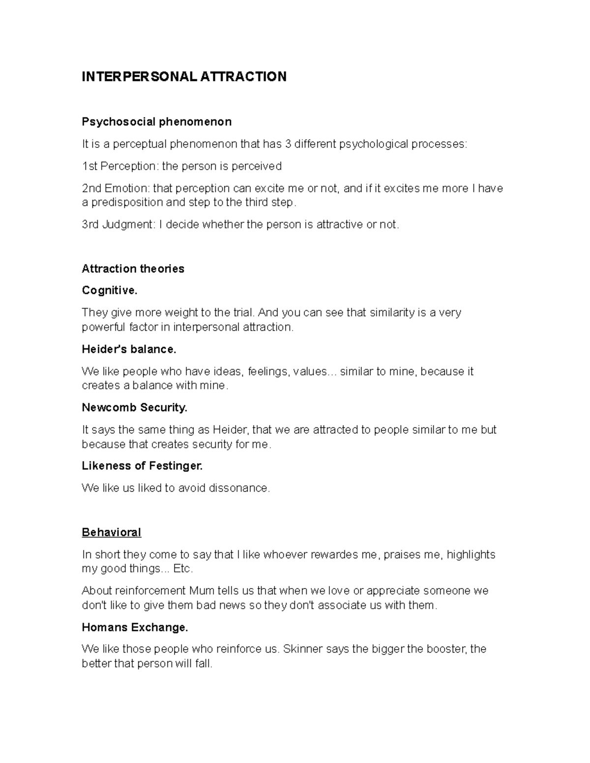 Interpersonal Attraction | Study notes Social Psychology | Docsity