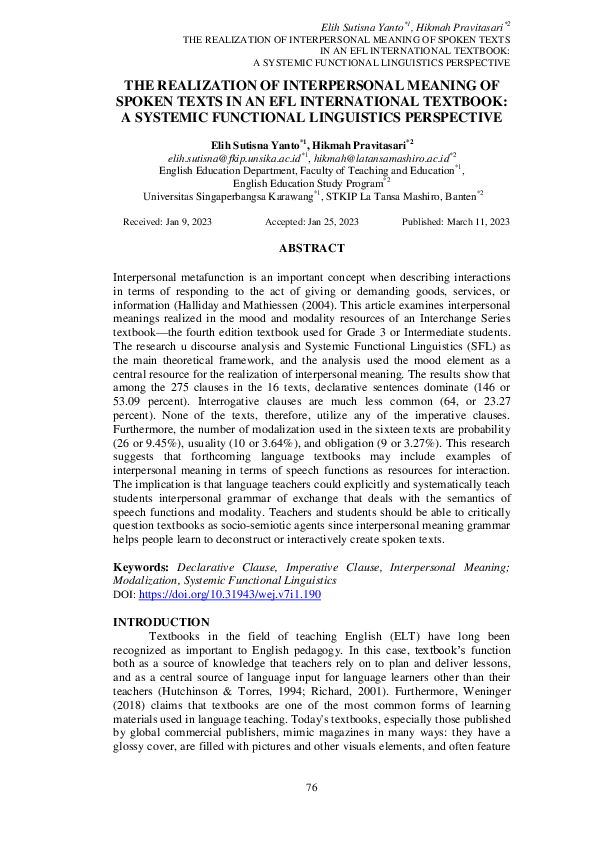 (PDF) THE REALIZATION OF INTERPERSONAL MEANING OF SPOKEN TEXTS IN AN ...