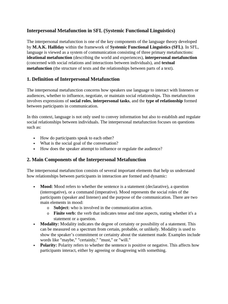 Interpersonal Metafunction in SFL | PDF | Communication | Cognitive Science