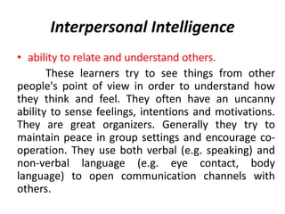 Interpersonal inlelligence & intrapersonal intelligence ...