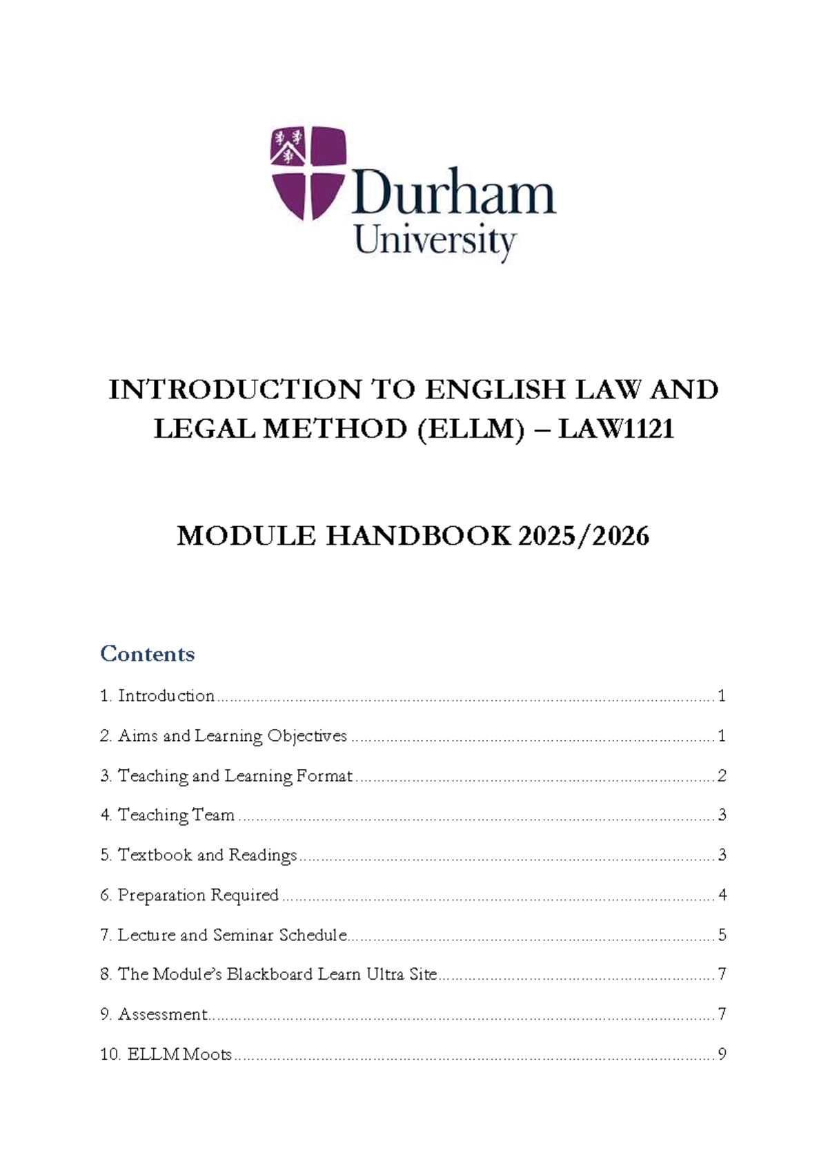 ELLM LAW1121 Module Handbook: Introduction to English Law 2025-2026 ...