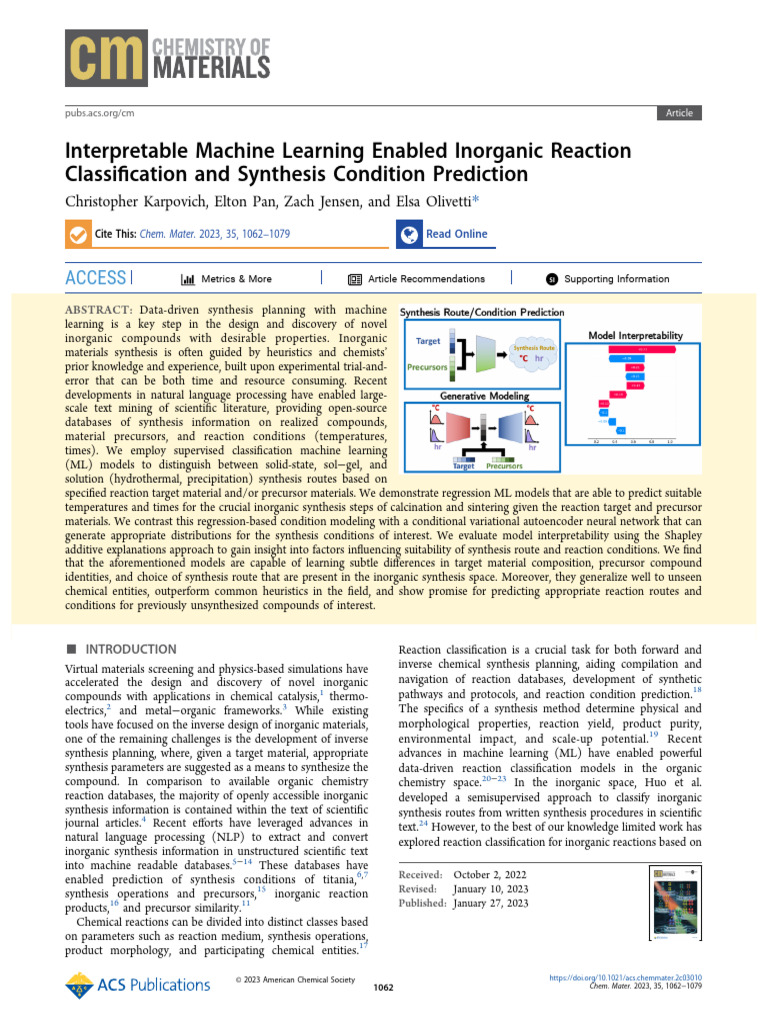 Interpretable Machine Learning Enabled Inorganic Reaction | PDF
